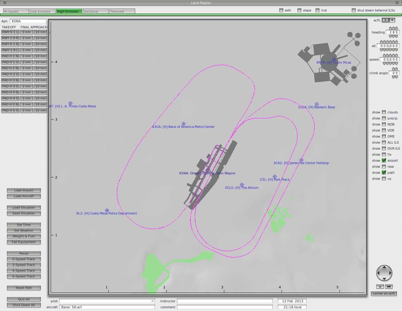Going for a r/w flight tomorrow morning, feeling very rusty, thought I'd jump on the Baron to do some pattern work. Started on 19R, was changed to 19L, did two laps there and attempted to honor the 15 degree offset. First pattern was tight, so I flew a left crosswind for 5 seconds longer on the second one.